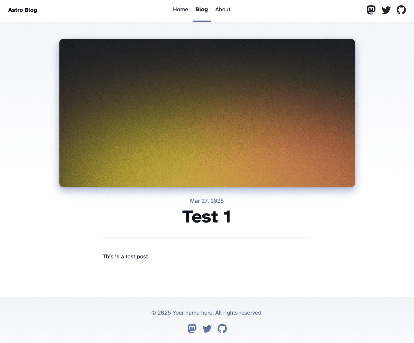 Now we’ll add a post to the site. Go to src/content/blog and create a file named test.md